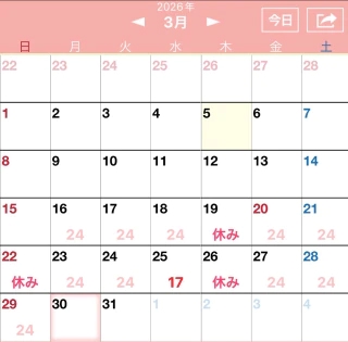 今月の出勤です。