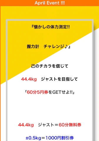 ピタリ賞で60分5円♡ 2026/04/28 11:20:30 女の子とお店をフォローします いいね! 4月は意外と力の微調整が難しいイベント握力計チャレンジ꒰✩︎˙˟˙✩︎꒱ぜひ無料券Getを目指して一緒にこのイベントも楽しみましょうー♡ 女の子とお店をフォローします いいね! この日記をXに投稿する